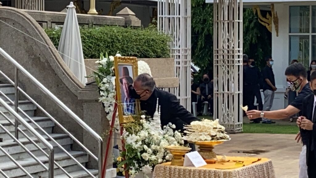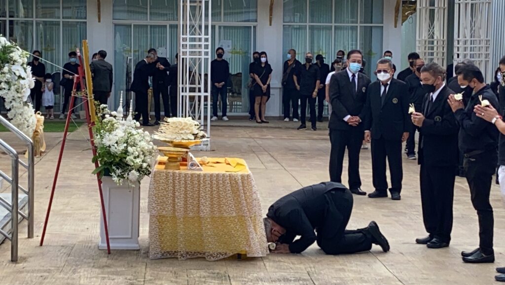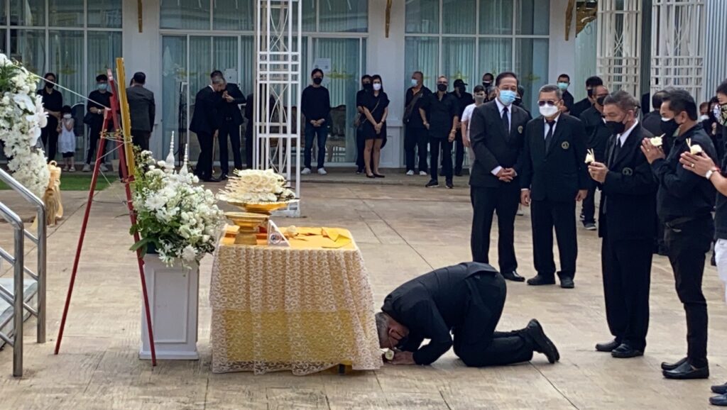 “คือผมเชื่อว่าคู่นี้ 70 ปีที่เขาเดินเกี่ยวแขนกัน 70 ปีเขาไม่เคยห่างจากกัน (ร้องไห้) เขาห่างกันแค่ 7 วันที่ผ่านมาเนี่ย ผมคิดว่าพ่อไปสวรรค์ แม่มารับพ่อไปสวรรค์ ผมอยากจะบอกว่าพ่อกับแม่ในชาติหน้า ถ้าผมได้เกิด ผมขอเกิดเป็นลูกพ่อกับแม่ ไม่ว่าเราจะจนตอนสมัยเด็กๆ จนมากแค่ไหนผมก็จะไปเกิดกับพ่อกับแม่ (ร้องไห้หนัก) ผมขอแค่นี้”
