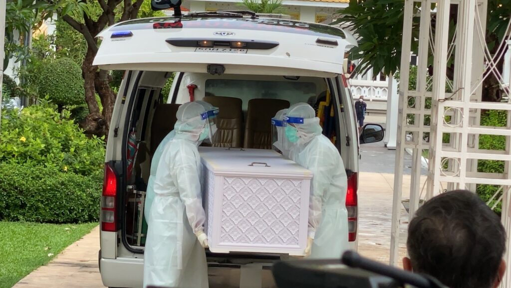 ดาราตลกชื่อดัง เป็ด เชิญยิ้ม ร่ำไห้ เจ็บปวดเกินรับไหว หลังสูญเสียคุณพ่อสุเทพ โพธิ์วิจิตร วัย 94 ปี ด้วยโรคโควิดในวันที่ 9 กรกฎาคม ที่ผ่านมา ล่าสุดทางครอบครัวได้นำร่างของคุณพ่อบำเพ็ญกุศลตามประเพณี ณ วัดพระศรีมหาธาตุวรมหาวิหาร บางเขน ท่ามกลางความโศกเศร้าของครอบครัว และคนใกล้ชิด และจัดพิธีตามมาตรกดารป้องกันโรคโควิด-19