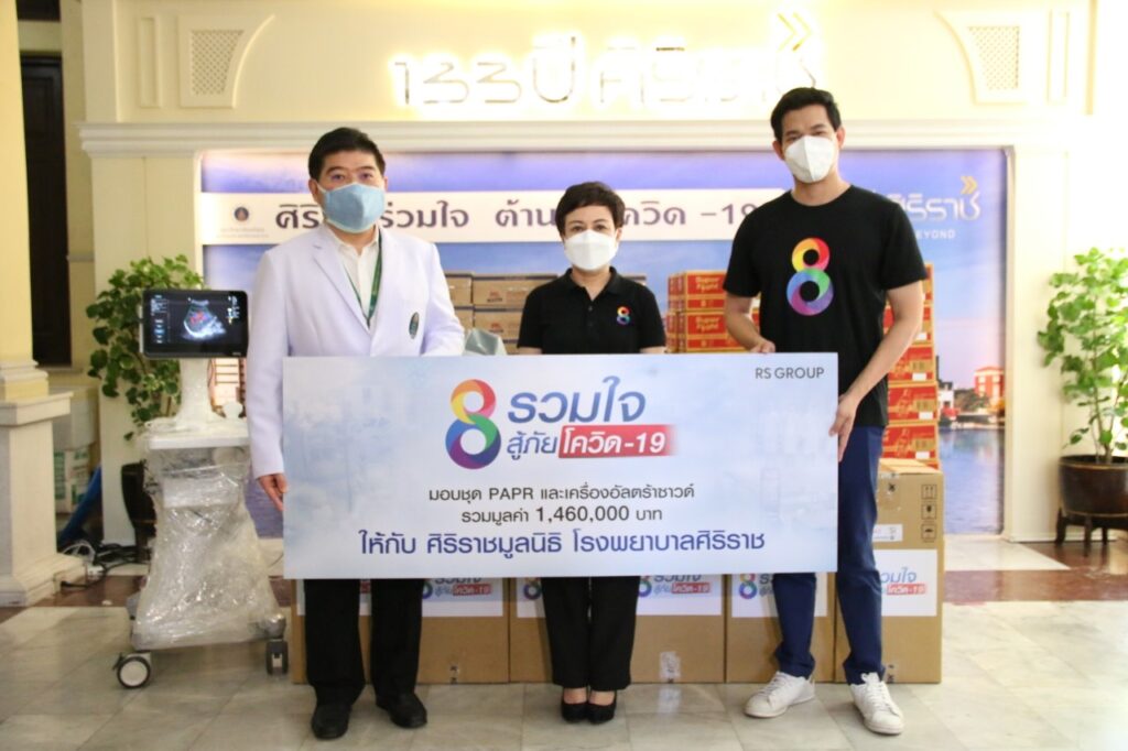 รศ. ดร. นพ. ยุงยุทธ ศิริวัฒนอักษร รองผู้อำนวยโรงพยาบาลศิริราช กล่าวว่า ขณะนี้โรงพยาบาลศิริราชมีผู้ป่วยโควิดเต็มจำนวนที่รองรับ ทั้งโรงพยาบาลและโฮสพิเทล รวม 600 เตียง กำลังขยายหอผู้ป่วยเพิ่ม นอกจากนี้ยังมีผู้ป่วยโควิดที่มาด้วยภาวะต้องคลอดลูกจำนวนมาก ซึ่งเครื่องอัลตราซาวด์จะช่วยให้การทำงานของแพทย์แม่นยำในการวินิจฉัยและรักษา สิ่งของที่ใช้ตอนนี้ เราขาดแคลนชุด PAPR ที่นำมาบริจาควันนี้ เป็นอุปกรณ์สำคัญมาก ทั้งแพทย์ พยาบาลที่เข้าดูคนไข้ผู้ป่วยโควิด ในไอซียูหรือห้องแยกโรค จำเป็น ถ้ามีชุดนี้ การทำงานจะสะดวกสบายมากขึ้น คนไข้จะได้รับการดูแลที่ไม่ต้องเร่งรีบ เนื่องจากบุคลากรทางการแพทย์ หมอ พยาบาล ไม่ได้เสียเหงื่อมาก ไม่ร้อนมาก ไม่เกิดภาวะที่ออกมาแล้วเป็นลม อย่างที่เราทราบกัน ตอนนี้ก็พยายามที่จะงดการให้บริการในคนไข้ที่ไม่เร่งด่วน เพราะเราต้องการทรัพยากรบุคคล ไม่ว่าแพทย์ พยาบาล หอผู้ป่วย มาจัดสรรรองรับผู้ป่วยโควิด ซึ่งตอนนี้ยังเป็นปัญหาใหญ่สำหรับประเทศ เรื่องนี้เราคนเดียวช่วยไม่ได้ ต้องร่วมมือช่วยกันนะครับ