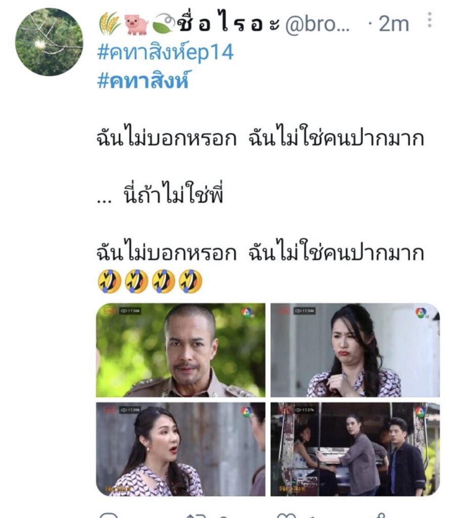 ล่าสุดทำเอาทวิตเตอร์ลั่น เมื่อแฟนละครออกมาโพสต์ตัวละครที่ชื่อ น้าพรรณว่า”เจ๊ไม่ปากมากเลยนะ บอกทุกคน,น้าพรรณมาเพื่อฮาจริงๆ ฯลฯ