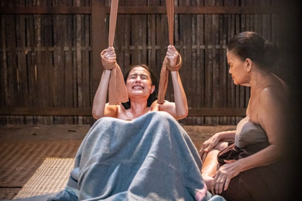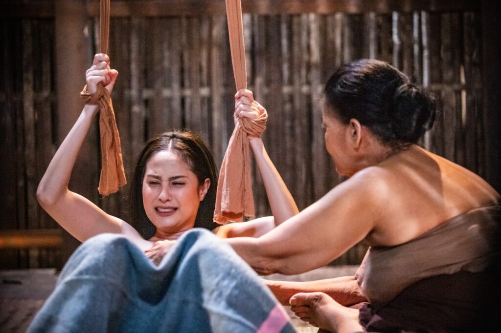 “ซีนคลอดลูกยากเรื่องอารมณ์ ถึงไม่เคยคลอดลูกแต่เคยเห็น แต่แค่เล่นอย่างไร ให้ออกมาดูธรรมชาติที่สุด ง่ายๆ แค่แอคติ้งยังเหนื่อยเลย มันเกร็งไปหมด ยอมรับว่าเครียดค่ะ แต่ขอย่าตลอด ให้ถ่ายทอดออกมาได้เหมือนที่สุด แต่ก็จะบอกว่าถ้าย่าอยากให้ทำแบบไหนให้ย่าดลใจให้รู้สึกแบบนั้น ก็เล่นตามความรู้สึก ไม่ได้ห่วงสวยไม่ห่วงหน้าเละ คือ ร้องไห้แล้วเบ่งแบบตึงเครียดจนสิ้นลมหายใจ”