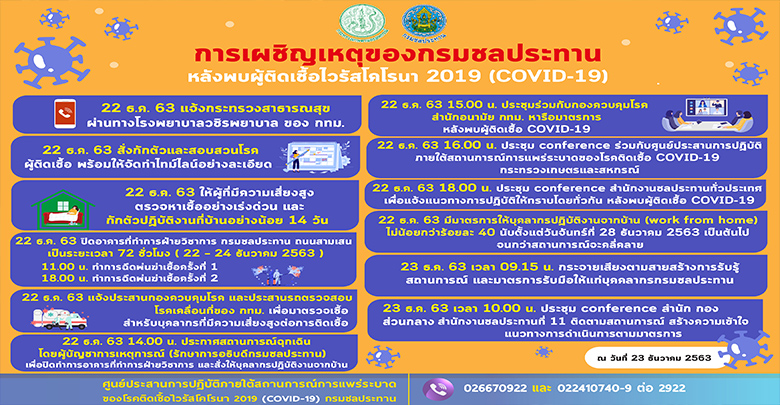 นายสัญญา แสงพุ่มพงษ์ ผู้ตรวจราชการกระทรวงเกษตรและสหกรณ์ รักษาราชการแทนอธิบดีกรมชลประทาน ในฐานะประธานคณะกรรมการเฉพาะกิจเพื่อบริหารจัดการตามมาตรการป้องกันการแพร่ระบาดของโรคติดเชื้อไวรัสโคโรนา 2019 (COVID-19) กรมชลประทาน เปิดเผยว่า กรมชลประทาน จากกรณีที่พบเจ้าหน้าที่สังกัดกรมชลประทาน ติดเชื้อโควิด-19 1 ราย ประกาศควบคุมการแพร่ระบาดของเชื้อโควิด-19 สั่งปิดอาคารทันทีเป็นเวลา 72 ชั่วโมง เพื่อพ่นยาฆ่าเชื้อ และเร่งส่งเจ้าหน้าที่ผู้สัมผัสผู้ติดเชื้อมีความเสี่ยงสูงตรวจหาเชื้อ จำนวน 88 ราย โดยพบผลตรวจเป็นลบจำนวน 78 ราย และอีก 10 คน อยู่ระหว่างรอผลตรวจ