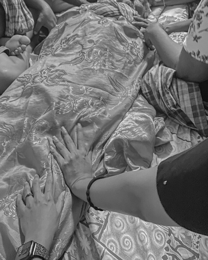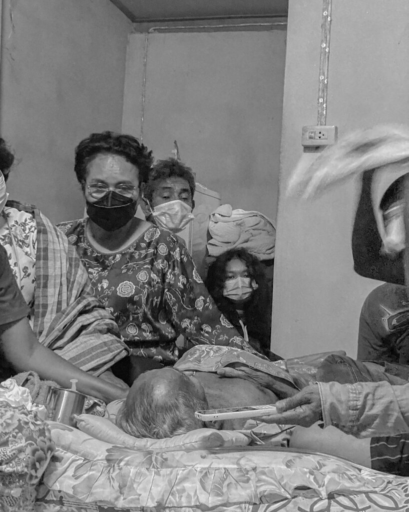 “คุณตาขออยู่ที่บ้าน ตากำชับว่าครั้งนี้ไม่ให้พาไปโรงพยาบาล ถ้าใครพาไปตาโกรธ คนในครอบครัวผลัดมาเฝ้าตาช่วยกันดูแลทุกคืน คุณตาเกิดวันอาทิตย์ เมื่อคืนนี้ เวลา 23.34 น. คุณตาใช่ ค่อยๆนอนหลับไปอย่างสงบ ตาสั่งไว้ว่าไม่ต้องร้องไห้ แกไปสบาย (ยากจังพ่อแก่เหอ🥲) ตาไปสบายอย่างที่บอกจริงๆค่ะ ไม่เจ็บปวดอีกต่อไป ไม่ต้องหวังเหวิดไอไหรแล้วนะพ่อแก่ แก้มกับเกศอิดูแลแม่ให้เต็มที่ที่สุดค่ะ รักพ่อแก่ตลอดไปนะคะ”