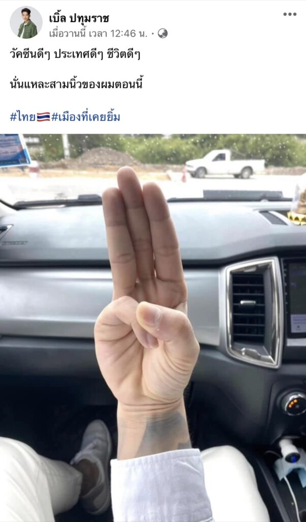 เป็นอีกหนึ่งคนที่ไม่ขออยู่นิ่ง ออกมาเคลื่อนไหววิพากษ์วิจารณ์การทำงานของรัฐ ท่ามกลางวิกฤติการแพร่ระบาดของเชื้อไวรัสโควิด-19 ที่กำลังระบาดอยู่ในขณะนี้ สำหรับนักร้องหนุ่มเบิ้ล-ปทุมราช โดยก่อนหน้านี้เจ้าตัวได้มีการโพสต์ภาพชู 3 นิ้วลงเฟซบุ๊คส่วนตัวพร้อมระบุว่า “วัคซีนดีๆ ประเทศดีๆ ชีวิตดีๆ นั่นแหละสามนิ้วของผมตอนนี้ #ไทย🇹🇭#เมืองที่เคยยิ้ม”