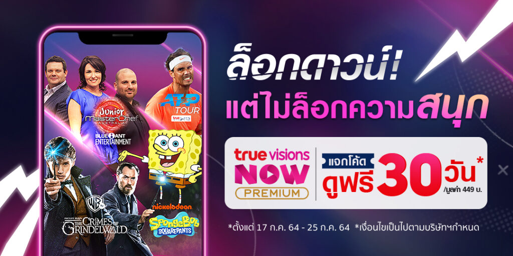 ไม่ว่าจะคุณจะอยู่ที่ไหนในตอนนี้ “ทรูวิชั่นส์ นาว” ดิจิทัลแพ็คเกจในรูปแบบสตรีมมิ่ง ที่สามารถให้คุณเข้าถึงคอนเทนต์ระดับพรีเมียมจากทางทรูวิชั่นส์ ได้อย่างง่าย และสะดวกมากยิ่งขึ้น ผ่านทางแอป เว็บไซต์ และกล่องทรูไอดี ทีวี พร้อมแล้วที่จะเสิร์ฟความบันเทิงให้ทุกคนได้คลายเครียดไปกับ กิจกรรม “TrueVisions Now : ล็อคดาวน์ !! แต่ไม่ล็อคความสนุก” ที่จะแจกโค้ดให้คุณได้ดูทั้งหนังไทย หนังต่างประเทศ รวมไปถึงซีรีส์ชั้นนำท็อปฮิตทั่วเอเซีย รายการกีฬาดัง พร้อมทั้งช่องรายการวาไรตี้ สารคดี การ์ตูน ข่าว ชื่อดังไปกับแพจเกจ TrueVisions Now Premium มูลค่า 449 บาท ฟรี !!!! จำนวน 90,000 สิทธิ์ สามารถรับความบันเทิงแบบไร้ขีดจำกัด และติดตามวิธีการเข้าร่วมกิจกรรม ได้ที่ https://www.facebook.com/TrueVisionsNow ตั้งแต่วันนี้ ถึง 25 กรกฎาคม 2564