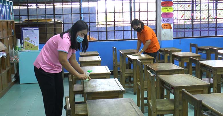 ผู้สื่อข่าวรายงานว่า เมื่อเวลา 09.00 น. คระครู บุคลากรทางการศึกษา โรงเรียนอนุบาลชัยนาท ร่วมกันทำความสะอาดโรงเรียน ฉีดพ้นน้ำยาฆ่าเชื้อโรค ตามจุดเสี่ยงต่างๆ เช่นโรงอาหาร ห้องเรียน สนามเด็กเล่นหลังจากทางโรงเรียนได้ประกาศปิดทำการเรียนการสอน ในวันที่ 24-25 ธันวาคม 2563 เพื่อเป็นการสร้างความมั่นใจให้กับทางผู้ปกครอง และตัวของเด็กนักเรียน หลังพบว่ามีผู้ป่วยติดเชื้อไวรัสโควิด-19 แล้ว 1 ราย ในพื้นที่ของจังหวัดชัยนาท โดยนายจรรยงค์ พุ่มมูล รองผู้อำนวยการโรงเรียนอนุบาลชัยนาท รักษาราชการแทนผู้อำนวยการโรงเรียนอนุบาลชัยนาท เปิดเผยว่า หลังจากที่ทางโรงเรียนได้มีประกาศปิดทำการเรียนการสอนออกไป ก็ได้ประสานคณะครู บุคลากรของโรงเรียน มาช่วยกันทำความสะอาดโรงเรียนครั้งใหญ่ โดยเน้น ตามจุดเสี่ยงต่อการสัมผัสโรคได้ง่าย เช่น โรงอาหาร ห้องเรียน สนามเด็กเล่น ราวบันได รวมถึงสื่อการสอนของเด็กทุกชนิด โดยจะมีการฉีดพ้น ยาฆ่าเชื้อโรคต่างๆ เพื่อมิให้เป็นการแพร่กระจายของเชื้อไวรัสโควิด-19 ได้ อีกทั้งยังเป็นการสร้างความมั่นใจให้กับผู้ปกครอง นักเรียน ในมาตรการการป้องกันโรคของโรงเรียน ทั้งนี้ หากสถานการณ์การแพร่ระบาดของเชื้อไวรัสโควิด-19 ในพื้นที่ของจังหวัดชัยนาทนั้น ไม่มีความรุนแรงไปมากกว่าเดิน คาดว่า โรงเรียนจะกลับมาสอบนักเรียนตามปกติอีกครั้งเมื่อสถานการณ์เข้าสู่สภาวะปกติ