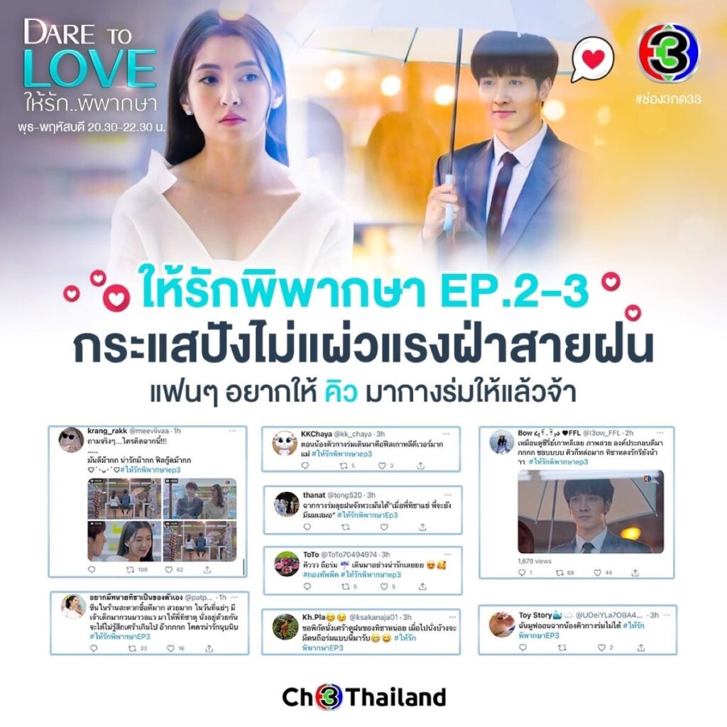 เรียกได้ว่าเป็นละครที่ดี และมีกระแสมาแรงจริง ๆ ในตอนนี้ เพราะฉะนั้นแฟนช่อง 3 ห้ามพลาดเด็ดขาดกับละคร “Dare to love ให้รักพิพากษา” ทุกวันพุธ-พฤหัสบดี เวลา 20.30 น. ทางช่อง 3 กด 33 หรือติดตามความเคลื่อนไหวได้ที่ Ch3Thailand, แอปพลิเคชั่น CH3Plus ทั้งดูสดและย้อนหลัง และ ดูย้อนหลังอีกช่องทางได้ทาง Netflix