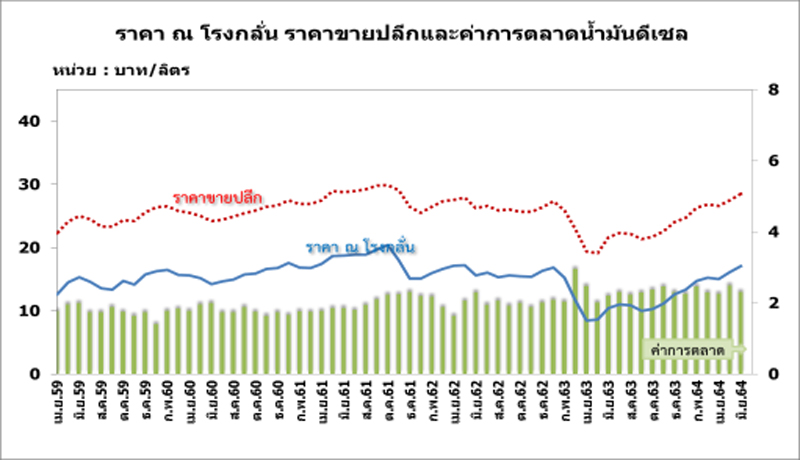 สำหรับค่าเงินบาทของไทยอ่อนค่าลงจากสัปดาห์ที่แล้ว 0.32 บาท/เหรียญสหรัฐฯ มาอยู่ที่ระดับเฉลี่ย 32.8269 บาท/เหรียญสหรัฐฯ ต้นทุนน้ำมันเบนซินทรงตัวจากสัปดาห์ที่แล้ว ขณะที่ต้นทุนน้ำมันดีเซลเพิ่มขึ้น 0.15 บาท/ลิตร ทำให้ค่าการตลาดของน้ำมันเบนซิน น้ำมันแก๊สโซฮอล และน้ำมันดีเซล เฉลี่ยอยู่ที่ระดับ 2.14 บาท/ลิตร
