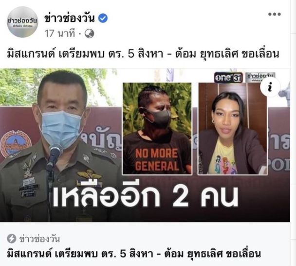 ต่อมามีสื่อช่องหนึ่งมีการนำเสนอข่าวถึงกรณีดังกล่าว โดยพาดหัวข่าวว่า มิสแกรนด์ เตรียมพบ ตร. 5 สิงหา – ต้อม ยุทธเลิศ ขอเลื่อน