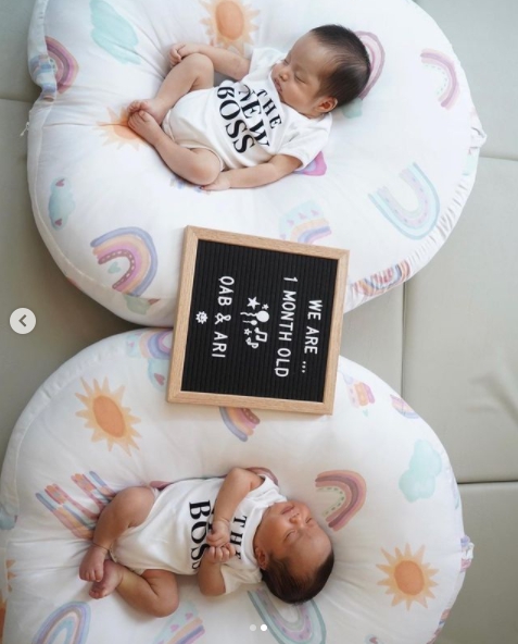 ล่าสุดคุณแม่ คุณพ่อป้ายแดง ออกมาโพสต์อินสตาแกรมส่วนตัวอัปเดตพัฒนาการของลูกน้อยฝาแฝดว่าตอนนี้ทั้งคู่อายุครบ 1เดือนแล้วจ้า โดยคุณแม่จ๊ะ ได้โพสต์ข้อความว่า “1 MONTH OLD 🤍 24.07.64 #OabAri” พร้อมกับอวดภาพสุดน่ารักๆของสองหนูน้อย เผยให้เห็นหน้าตาน่ารักน่าน่าชังมาก และโมเมนท์ที่อบอุ่นด้วยการให้ลูกฝาแฝดใส่เสื้อคู่ที่เขียนว่า The New Boss อีกด้วย