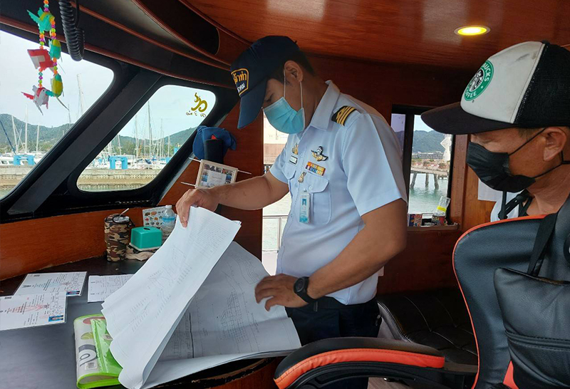 นายวิวัธน์ ชิดเชิดวงศ์ ผู้อำนวยการสำนักงานเจ้าท่าภูมิภาคที่ 5 นายณชพงศ ประนิตย์ ผู้อำนวยการสำนักงานเจ้าท่าภูมิภาคสาขาภูเก็ต พร้อมคณะเจ้าหน้าที่ และหน่วยงานที่เกี่ยวข้อง ตรวจเยี่ยมการดำเนินการตามมาตรการด่านตรวจทางน้ำโครงการเปิดพื้นที่รับนักท่องเที่ยวต่างชาติจังหวัดภูเก็ต Phuket Sandbox ณ ด่านตรวจท่าเทียบเรืออ่าวฉลอง และศูนย์ควบคุมการจราจรทางน้ำจังหวัดภูเก็ต (Phuket VTMS) ตำบลฉลอง อำเภอเมือง จังหวัดภูเก็ต เพื่อติดตามการปฏิบัติงานของเจ้าหน้าที่ในการดูแลความปลอดภัยทางน้ำ การคัดกรองนักท่องเที่ยว การอำนวยความสะดวกแก่นักท่องเที่ยวที่เดินทางท่องเที่ยวทางน้ำ ให้เป็นไปตามมาตรการด้านความปลอดภัยทางน้ำ มาตรการป้องกันการแพร่ระบาดของโรคติดเชื้อไวรัสโคโรนา 2019 (COVID-19) ของกรมเจ้าท่าในช่วงเทศกาลวันหยุดต่อเนื่อง