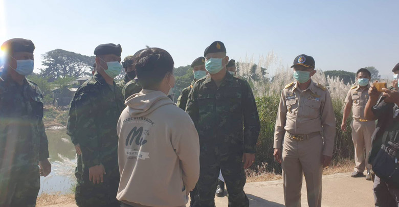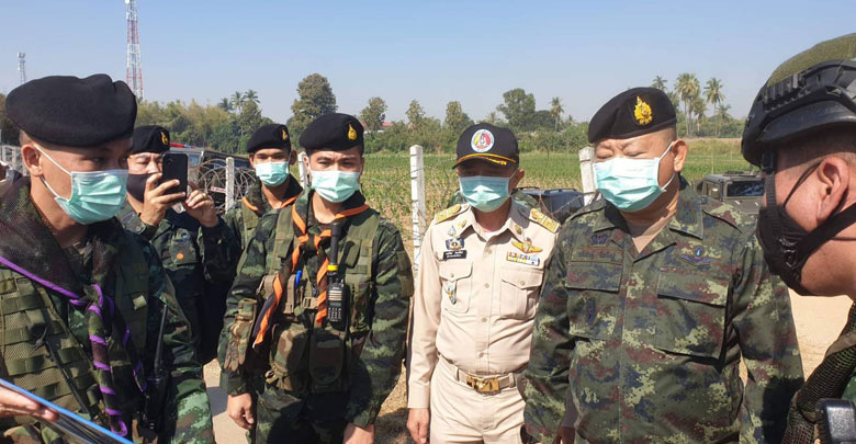 แม่ทัพภาค 3 กล่าวว่า วันนี้เดินทางนำความห่วงไยของ พล.อ.ประยุทธ์ จันทร์โอชา นายกรัฐมนตรีและรัฐมนตรีว่าการกระทรวงกลาโหม กับผู้ปฏิบัติงานตามแนวชายแดนที่มีข่าวว่ามีแรงงานต่างด้าวทะลักออกไป ซึ่งที่ผ่านมาเจ้าหน้าที่ก็ทำงานการอย่างหนัก วันนี้มาดูมาทำความเข้าใจ รวมทั้งสั่งการเฝ้าระวังตามแนวชายแดนตามข่าวแล้วนำเชื้อโควิดไประบาดที่สมุทรสาคร เราคงปฏิเสธไม่ได้ว่าน่าจะเป็นแรงงานที่ติดโรคแล้วเข้าไปในพื้นที่สมุทรสาคร แต่ว่าขณะนี้เราได้เพิ่มเติมกำลังอีก 1 กองร้อยรวมทั้งวัสดุอุปกรณ์เช่น กล้องวงจรปิดอินฟาเรด โดรนอินฟาเรดบินในเวลากลางคือ บางครั้งเจ้าหน้าที่อ่อนล้าก็จะใช้เครื่องตรวจจับอีกทางเพราะเราทำงานตลอด 24 ชั่วโมง