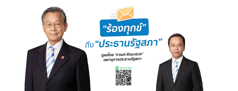 - ทาง LINE Official Account ชื่อว่า “ร้องทุกข์ – ปธ รัฐสภา” https://lin.ee/1p41ny1