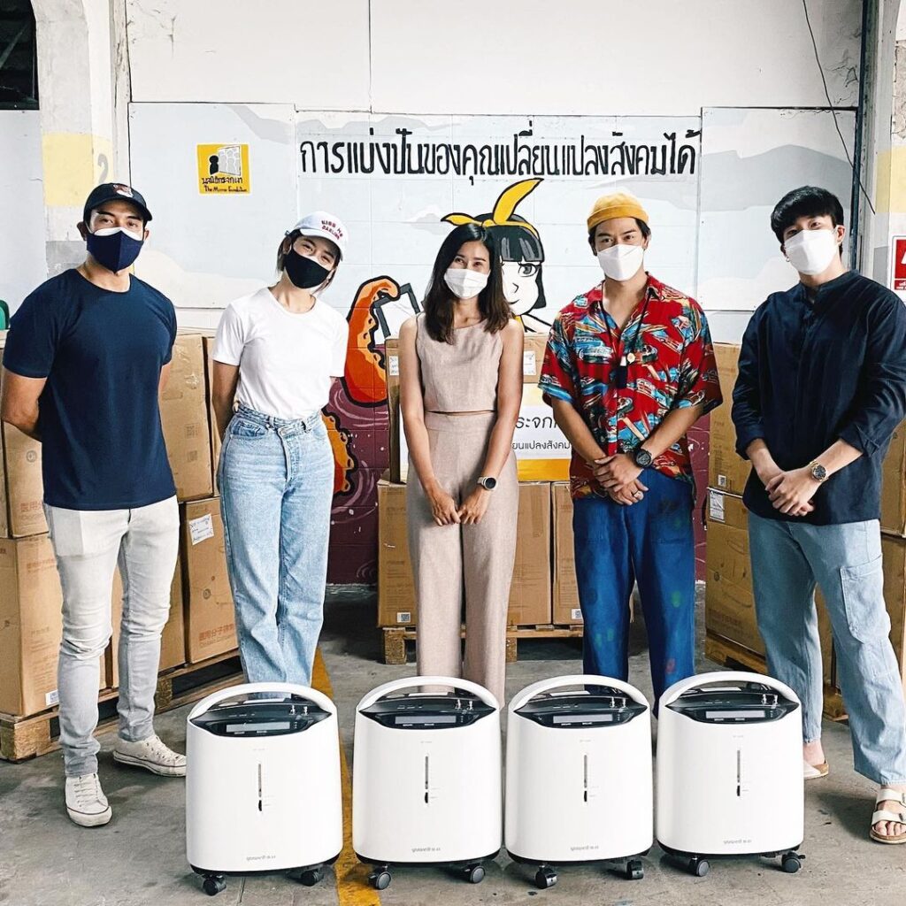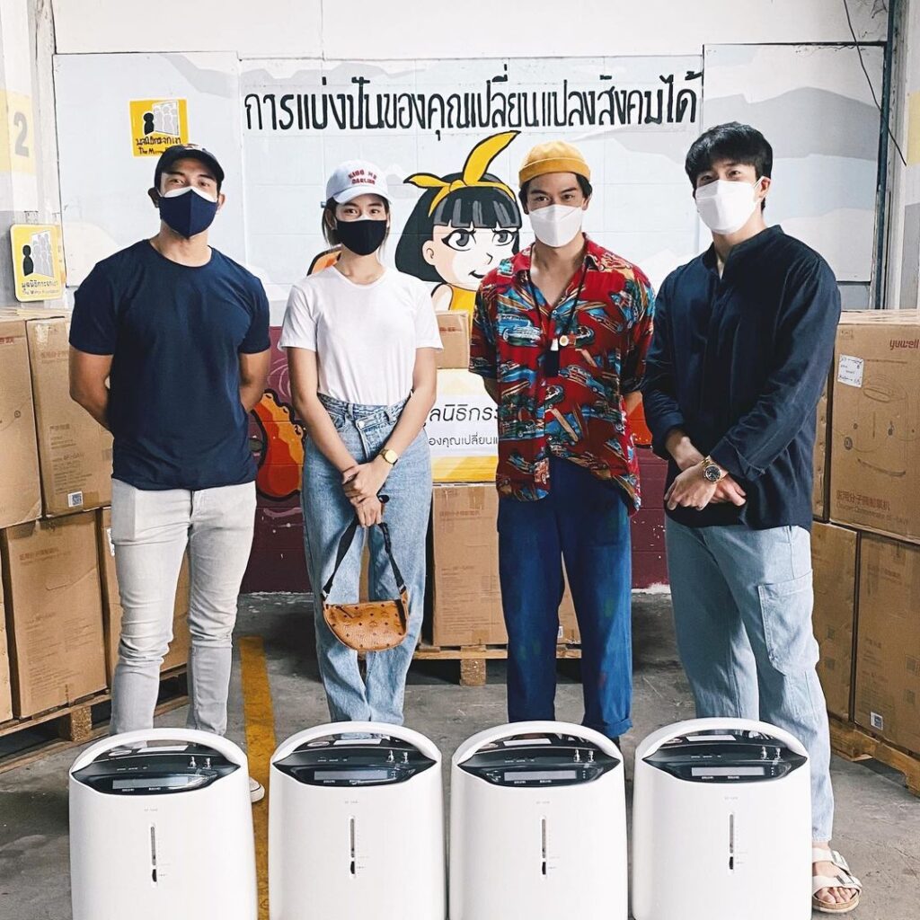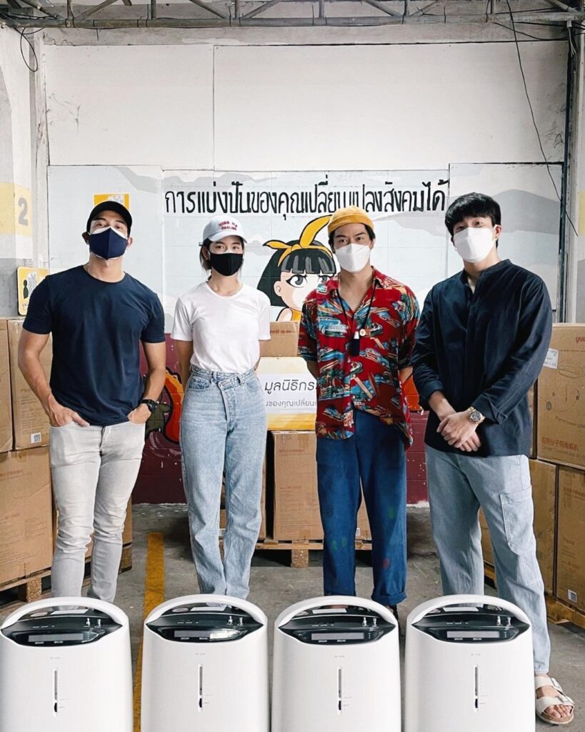 ขอเป็นส่วนหนึ่งในการร่วมช่วยเหลือแบ่งปัน เพื่อให้พี่น้องคนไทยผ่านวิกฤติโควิด-19 ในครั้งนี้ไปด้วยกัน สำหรับเหล่าศิลปิน ดารา นำทีมโดยเกรท – วรินทร , อาเล็ก – ธีรเดช,เป๊ก –เปรมณัช,โบว์ –เมลดา ที่ล่าสุดแท็กทีมเพื่อนๆร่วมส่งมอบเครื่องผลิตออกซิเจน จำนวน 30 เครื่องเพื่อมอบให้กับมูลนิธิกระจกเงา ในการนำไปใช้เพื่อช่วยผู้ป่วยโควิด-19