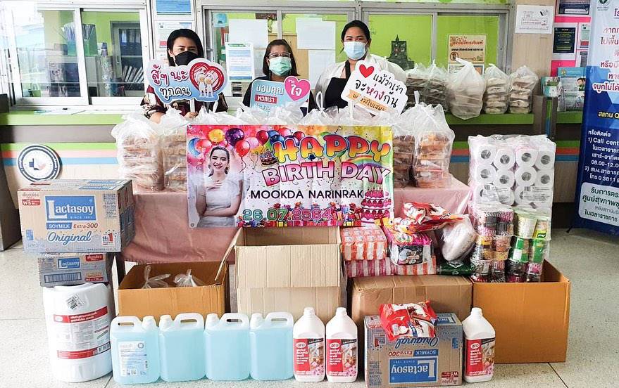 เริ่มตั้งแต่เซอร์ไพรส์สุดปัง จากแฟนคลับบ้านแม่จีน @onlymookdachina ที่จัดโปรเจกต์เบิร์ธเดย์บิ๊กเบิ้มอวยพรวันเกิด มุกดา ด้วยการทุ่มซื้อป้ายโฆษณากลางใจเมือง พร้อมส่งของขวัญวันเกิดมาเซอร์ไพรส์ให้มุกดาอีกชุดใหญ่ รวมถึงแฟนคลับจากหลายประเทศ อาทิ สหรัฐอเมริกาอังกฤษออสเตรเลียฟิลิปปินส์พม่า ฯลฯ ที่ส่งของขวัญมาเซอร์ไพรส์มุกดาเช่นกัน โดยมีแฟนคลับชาวไทยบ้านหลัก @Mookdastation รับหน้าที่ประสานงานรวบรวมของขวัญทุกชิ้นส่งต่อให้กับมุกดา พร้อมยังนำของที่แฟนคลับร่วมบริจาค ได้แก่ อาหาร เครื่องอุปโภค บริโภค และเวชภัณฑ์ ไปมอบให้กับบุคลากรทางการแพทย์ เจ้าหน้าที่ และผู้ป่วยโควิด–19 ณ โรงพยาบาลชลบุรี จ.ชลบุรี โดยมี บ้านหัสรินทร์ ซึ่งเป็นกลุ่มแฟนคลับของ มุกดา และ เข้ม-หัสวีร์ ภัคพงษ์ไพศาล ร่วมบริจาคเพื่อช่วยเหลือคนงานที่ได้รับผลกระทบจากสถานการณ์โควิด-19 ณ แคมป์คนงานย่านบางกรวย  เป็นการทำบุญร่วมกันในโอกาสวันคล้ายวันเกิดของมุกดาในปีนี้ด้วย