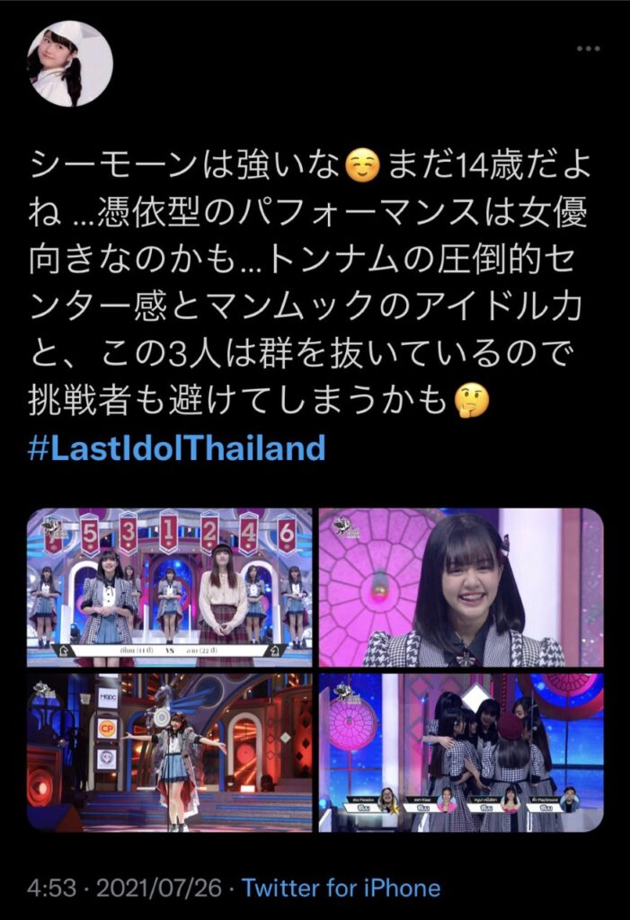สัปดาห์ที่ผ่านมาถือเป็นวีคของสมาชิกชั่วคราวหมายเลข 5 ซีโมน-ปุณณาสา ต้นวิชา จากรายการ “Last Idol Thailand Presented by True 5G” (ลาสต์ ไอดอล ไทยแลนด์) ทางช่อง 7 HD เลยก็ว่าได้ เพราะออร่าความบลิ้งค์ประกายซะจนไปนั่งใจหัวใจแฟน ๆ ไอดอลไทยหลายต่อหลายคน