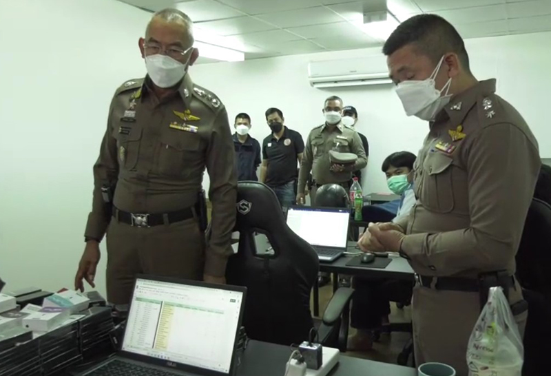 พล.ต.ท.จิรพัฒน์ ภูมิจิตร จเรตำรวจ ปฏิบัติราชการกองบัญชาการตำรวจนครบาล นำกำลังเข้าตรวจค้นจับแก๊งพนันฟุตบอลออนไลน์ ที่ทาวน์โฮมแห่งหนึ่งภายในหมู่บ้านดัง ย่านอ่อนนุช แขวงและเขตสวนหลวง กรุงเทพมหานคร โดยที่เกิดเหตุ เป็นอาคารพาณิชย์ สูง 3 ชั้น โดยชั้นที่ 1 เปิดขายบุหรี่ไฟฟ้าออนไลน์ พบพนักงาน 3 คน ทำหน้าที่เป็น แอดมินรับออเดอร์สินค้า จากนั้นจะมีผู้ร่วมขบวนการอีก 2 ทีม ทำหน้าที่ดูแลบัญชีรับโอนเงิน
