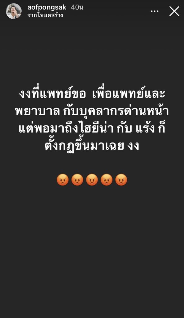 ล่าสุดทางอ๊อฟ ปองศักดิ์ เองก็ได้ออกมาพูดถึงประเด็นดังกล่าว ด้วยการโพสต์ไอจีสตอรี่ว่า “งงที่แพทย์ขอ เพื่อแพทย์และพยาบาล กับบุคลากรด่านหน้า แต่พอมาถึง ไฮยีน่า กับ แร้ง ก็ ตั้งกฎขึ้นมาเฉย งง”