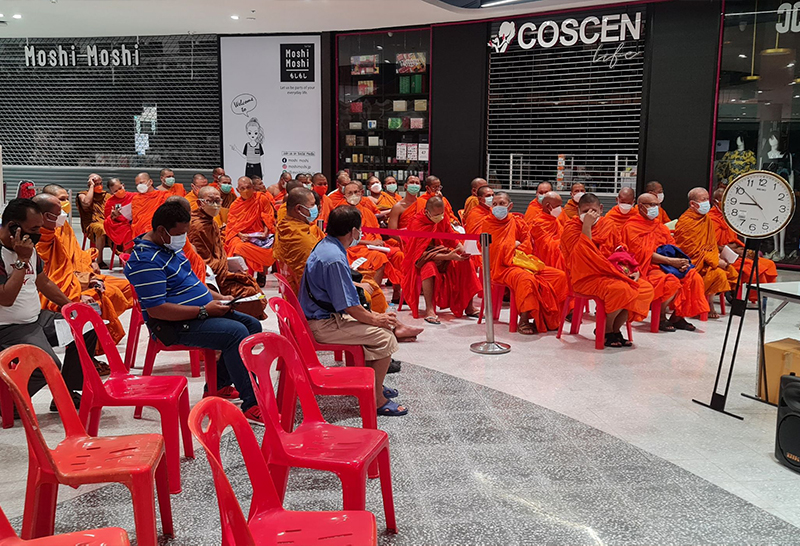 โดยพระสงฆ์จำนวน 100 รูปจาก 16 วัดในตรัง ได้เดินทางมายังห้างโรบินสันตั้งแต่เช้า โดยมีทีมแพทย์และเจ้าหน้าที่ เตรียมความพร้อมในการฉีดวัคซีนซิโนฟาร์มถวายในครั้งนี้
