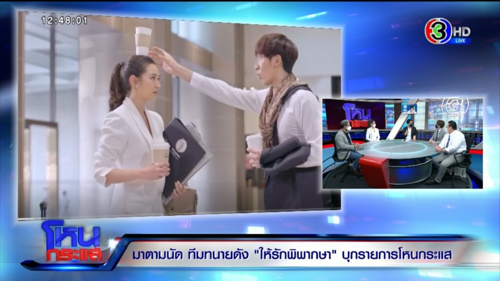 พีค เรื่องนี้ดูย้อนหลังได้ทางเน็ตฟริกซ์และ ch3+ (พูดฝากละครเป็น 3 ภาษา อังกฤษ – จีน – เกาหลี) ฝากละครพวกเราด้วย อยากบอกว่าอยากให้ทุกคนให้ความรักกันเยอะๆ อย่าลืมดูรายการโหนกระแสด้วย