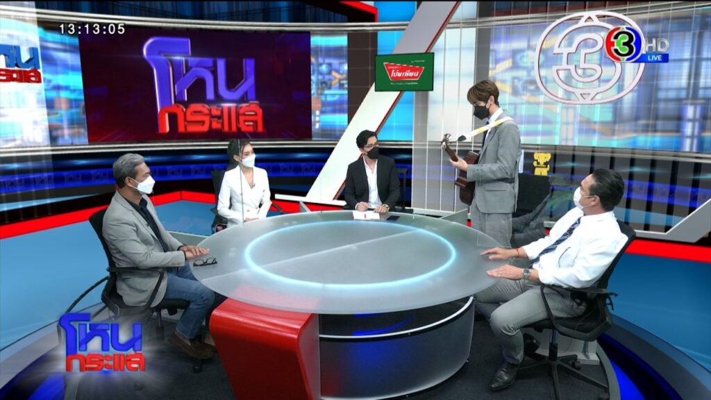 เกริก ตอนแรกพี่ต้นคิดว่าต้องมีซีนทนายโทรคุยกับรายการ ผมต้องไปออกรายการโน่นนี่นั่น เหมือนทนายบางคนที่ไปออกรายการให้ตัวเองมีเครดิตขึ้นมา ก็เลยคิดว่าเอ๊ะ เอารายการอะไรดี นึกไม่ออกจริงๆ โหนกระแสแล้วกัน เป็นตัวเลือกสุดท้าย
