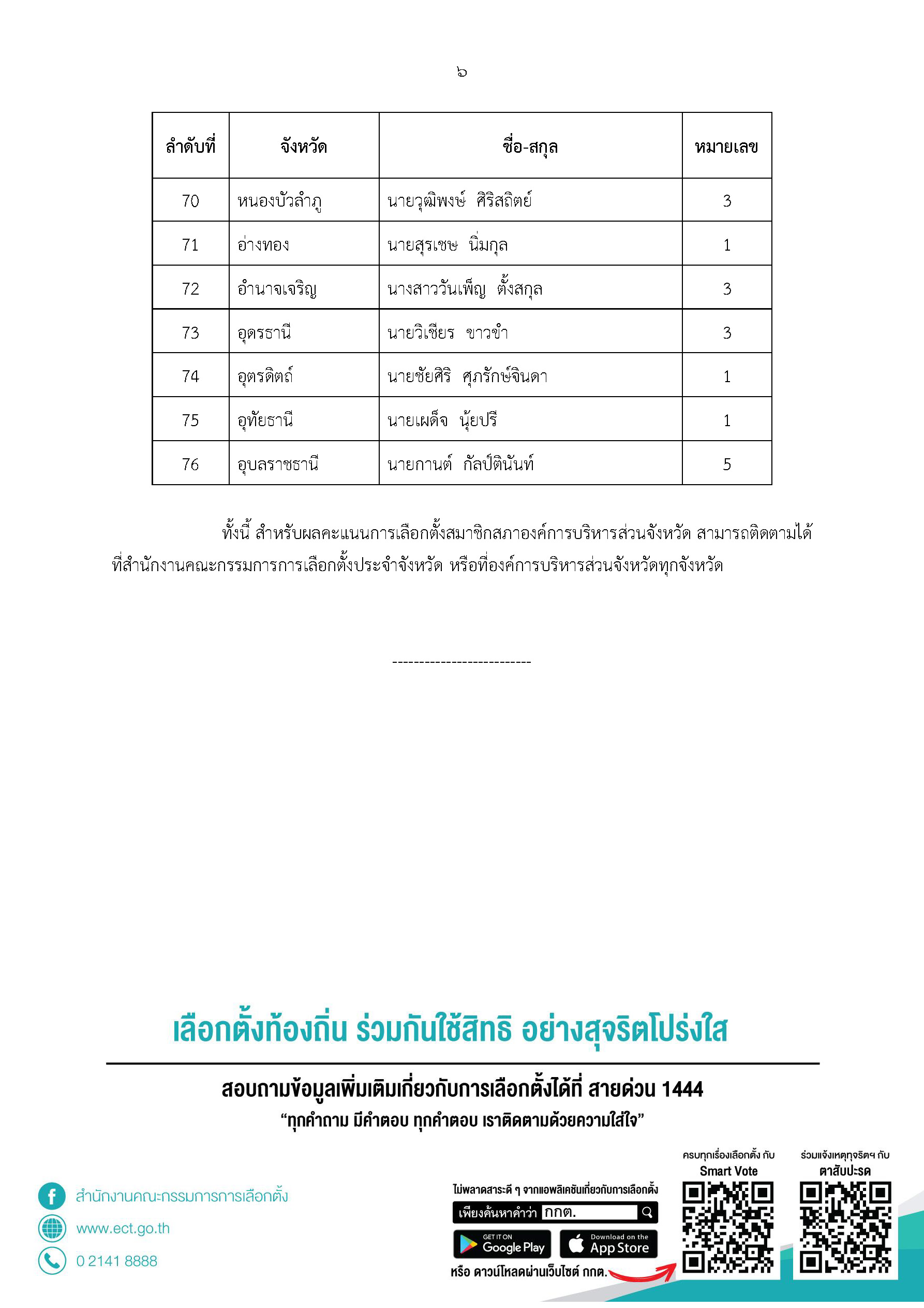 กกต.ประกาศผู้ชนะอบจ.76จังหวัดไม่เป็นทางการ