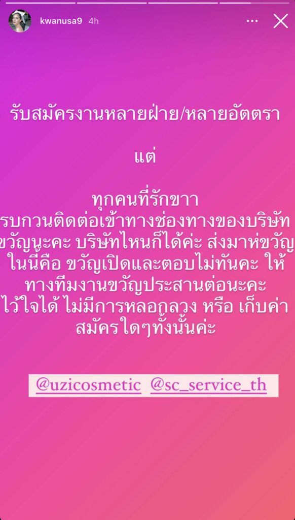 ส่งมาให้ขวัญในนี้คือ ขวัญเปิดและตอบไม่ทันค่ะ ให้ทางทีมงานขวัญประสานต่อนะคะไว้ใจได้ ไม่มีการหลอกลวง หรือ เก็บค่าสมัครใดๆทั้งนั้นค่ะ”