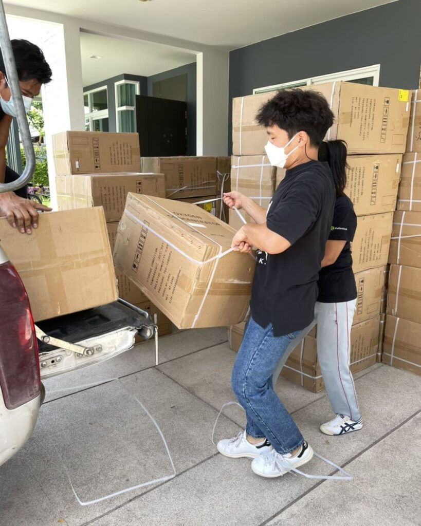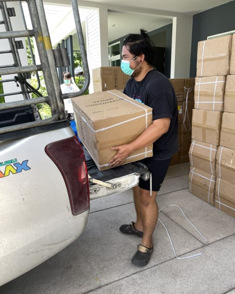 “ตอนนี้ถึงไทยทั้งหมด 73เครื่องแล้วครับ ทยอย ส่งต่อถึงอาสาสมัคร แพทย์ พยาบาล และ โรงพยาบาล ที่เราติดต่อไว้ครับ ขอบคุณภูมิและหยี ที่ไปช่วยขนของ และคุณกานและแฟน ที่เป็นธุระให้ทุกอย่างนะครับ”