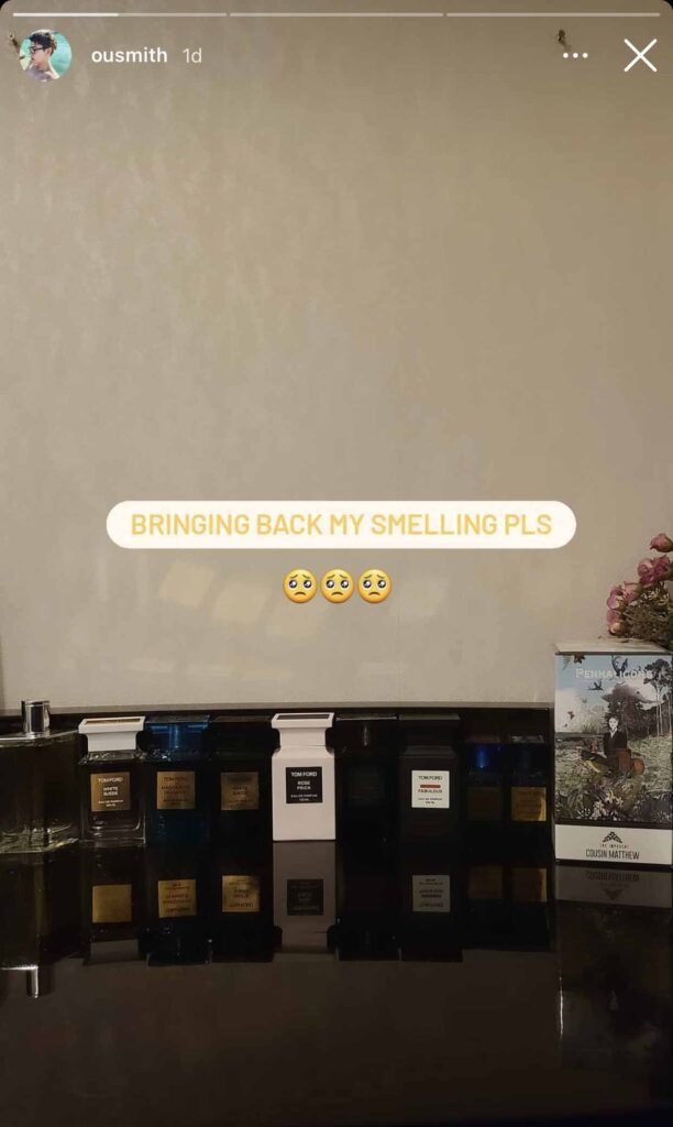 ล่าสุด หนุ่มอู๋ ได้โพสต์อัปเดตอาการของตนเองผ่านอินสตาแกรมส่วนตัวพร้อมแคปชั่นว่า “เบื่อจางง ยางไม่ได้กลิ่น” โดยก่อนหน้านี้เจ้าตัวได้โพสต์อินสตาแกรมสตอรี่เป็นรูปน้ำหอมพร้อมแคปชั่นว่า “BRINGING BACK MY SMELLING PLS” ซึ่งคาดว่าอาการดังกล่าวน่าจะมีสาเหตุมาจากการติดเชื้อที่ทำให้การรับกลิ่นยังทำงานได้ไม่ปกติ แม้ว่าจะรักษาจนหายแล้วก็ตาม