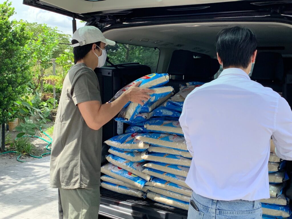 ทั้งนี้ หมาก ได้เป็นตัวแทนพูดถึงเรื่องนี้ว่า “พวกเราต่างพบกับวิกฤตินี้กันมานาน หลายๆ ครอบครัวกำลังประสบปัญหา พวกเราขอเป็นส่วนเล็กๆ ที่ได้ช่วยเหลือ ครั้งนี้ผมและทุกคนเลือกมอบข้าวสารให้แก่พี่ๆ น้องๆ ส่งต่อไปให้ 3 ชุมชน จำนวน 275 หลังคาเรือนครับ”