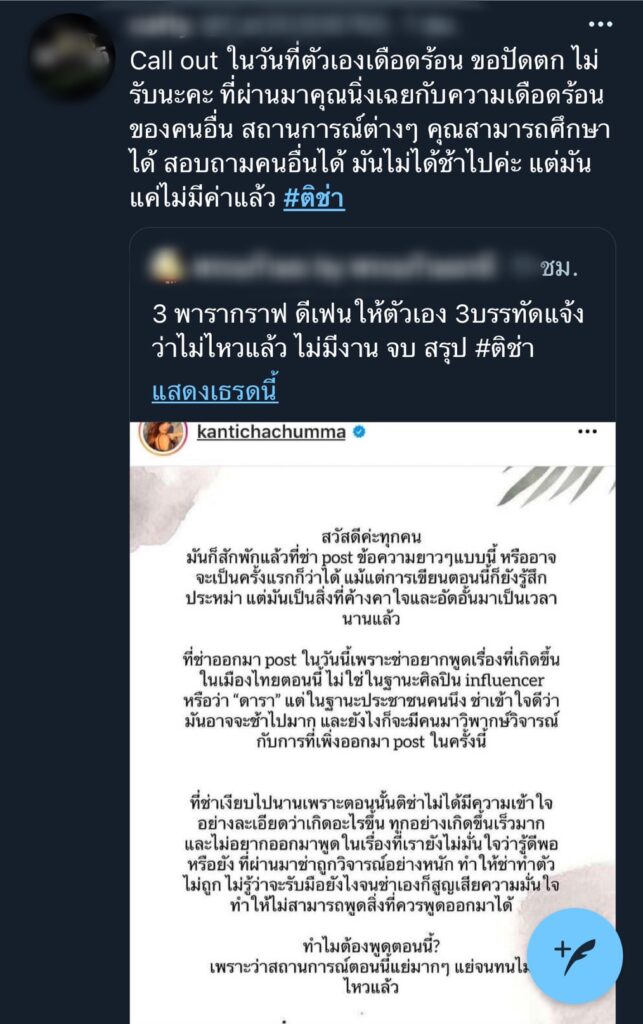 ชาวเน็ตจวกยับ! หลัง “ติช่า” ร่ายยาว Call Out ครั้งแรก