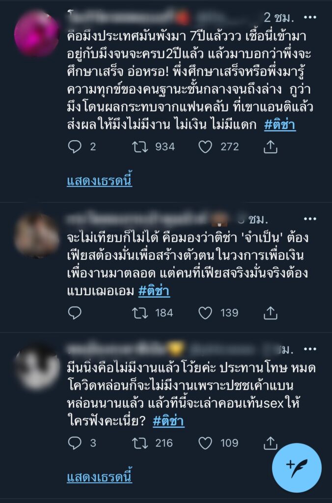 เรียกว่าถึงขั้นติดเทรนด์บนทวิตเตอร์เลยทีเดียว หลังดาราสาวสุดมั่น ติช่า – กันติชา ออกมาร่ายยาวโพสต์แสดงความรู้สึก หลังจากที่ได้ลงพื้นที่ช่วยเหลือคนที่ได้รับผลกระทบจากสถานการณ์โควิด ทำให้รู้ซึ้งถึงสถานการณ์บ้านเมืองในตอนนี้ และตัดสินใจออกมาพูดเป็นครั้งแรก เพราะก่อนหน้านี้ยังไม่มีความมั่นในและความรู้ที่ดีพอ และออกตัวว่ารู้ดีหากพุดตอนนี้ก็ต้องมีกระแสวิพากษ์วิจารณ์อยู่แล้ว