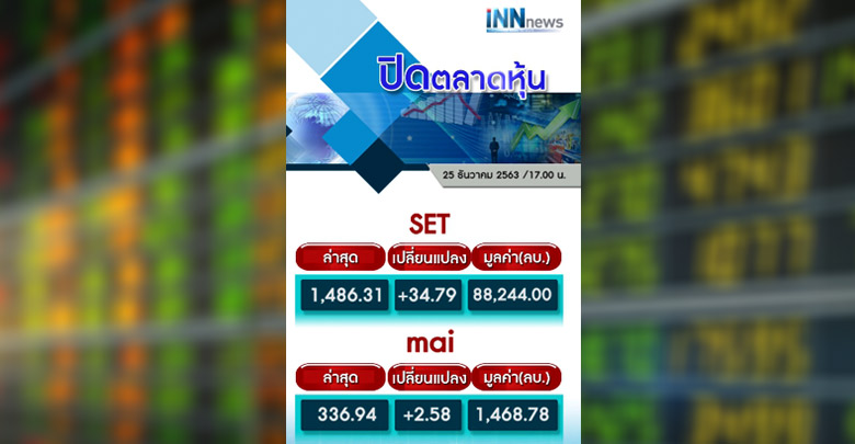 หุ้นไทยปิดบวก34.79 แตะ1,486.31จุด