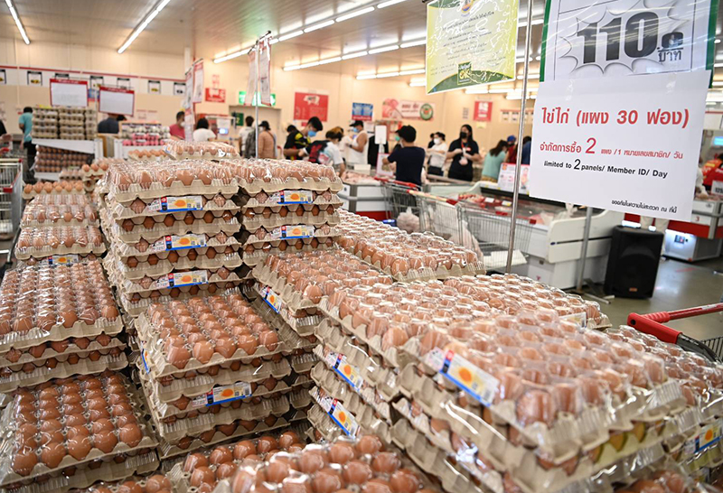 นายจุรินทร์ ลักษณวิศิษฏ์ รองนายกรัฐมนตรีและรัฐมนตรีว่าการกระทรวงพาณิชย์ เปิดเผยภายหลังการตรวจเยี่ยมขบวนคาราวานรับ “ถุงน้ำใจ ปชป. ส่งผู้รอเตียง”และตรวจเยี่ยมราคาสินค้า ณ ห้างแม็คโคร สาขาสามเสน ถึง สินค้าอุปโภคบริโภค ว่า ในช่วงแรกๆ ของการล็อกดาวน์ ประชาชนอาจจะตื่นตระหนกกังวลบ้าง แต่ตอนนี้คลี่คลายลงบ้าง โดยผู้บริโภคเริ่มเรียนรู้เข้าใจว่า ไม่ต้องกังวลว่าสินค้าจะขาด และอย่างวันนี้ผู้บริหารแม็คโครยืนยันว่าสินค้าสำคัญ สามารถเติมเต็มเชลล์ได้เพียงพอ เช่น ไข่ไก่ ยกเว้นบางช่วงที่เติมเชลล์ไม่ทัน แต่เฉลี่ยทั้งประเทศยังมีพอ หากขาดในอนาคตทางกระทรวงพาณิชย์ให้จะมีมาตรการมาแก้ปัญหา และเมื่อเทียบกับหลายเดือนก่อนที่มีปัญหาหมูแพง ราคาช่วงนี้ลดลง และที่สำคัญคือเรื่องปริมาณอย่ากังวลไม่ต้องซื้อตุน ตอนนี้ไข่ไก่เบอร์ 3 ฟองละ 3.50 บาทสูงขึ้นกว่าหลายเดือนที่ผ่านมา แต่ขึ้นอยู่กับฤดูกาลว่าช่วงไหนไข่ออกน้อยออกมากเกี่ยวข้องกับกลไกตลาด