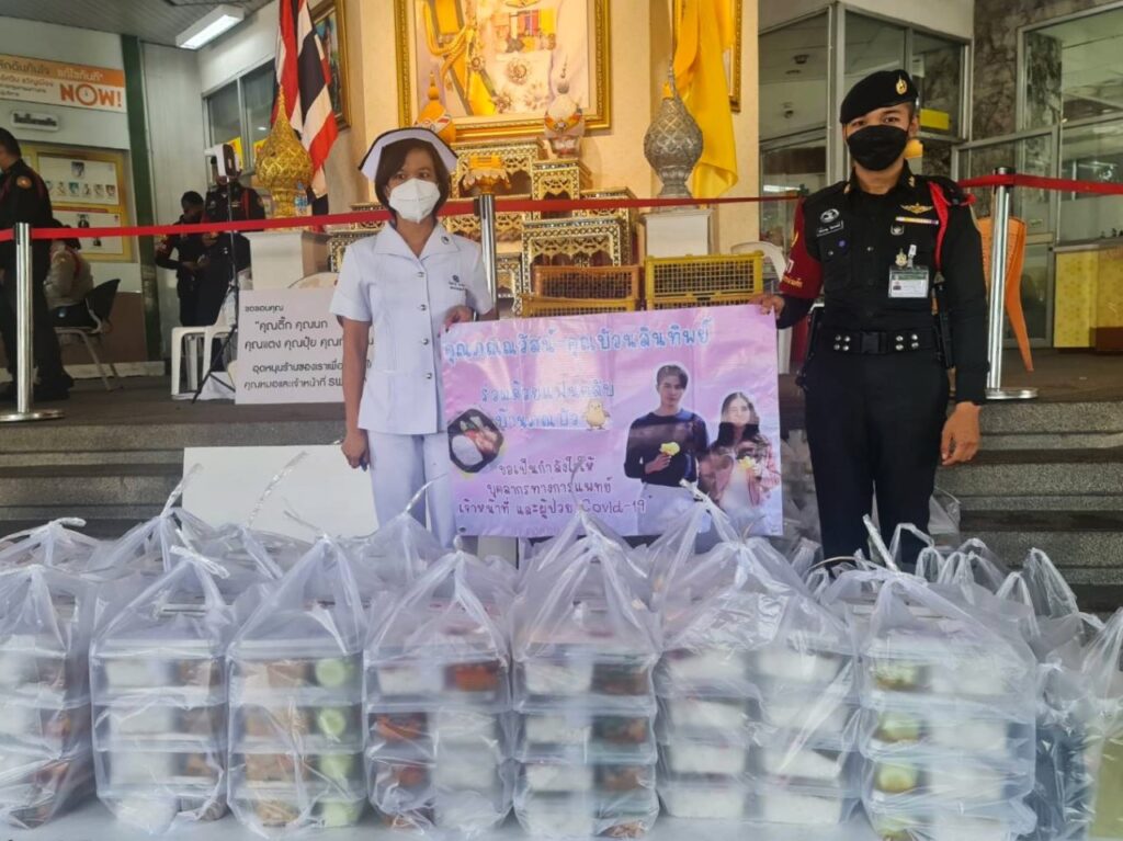 ทำเอานางเอกหน้าหวาน บัว-นลินทิพย์ สกุลอ่องอำไพ ยิ้มไม่หุบเลยทีเดียว เมื่อแฟนคลับบ้านคู่ @ponbuafamily_ ที่คอยสนับสนุนผลงานของตนเองกับพระเอกคู่จิ้น ภณ-ณวัสน์ ภู่พันธัชสีห์ ร่วมกันทำกิจกรรมดีๆ ส่งต่อความห่วงใยและกำลังใจให้ทีมนักรบชุดขาวผู้เสียสละทำงานอย่างเหน็ดเหนื่อย ในสถานการณ์การแพร่ระบาดของเชื้อไวรัสโควิด-19 ด้วยการจัดส่งข้าวกล่องและน้ำสมุนไพร ไปมอบให้ทีมแพทย์, พยาบาล และบุคลาการทางการแพทย์หลายร้อยชีวิตที่โรงพยาบาลตากสิน ในนามของทั้งคู่และแฟนคลับ