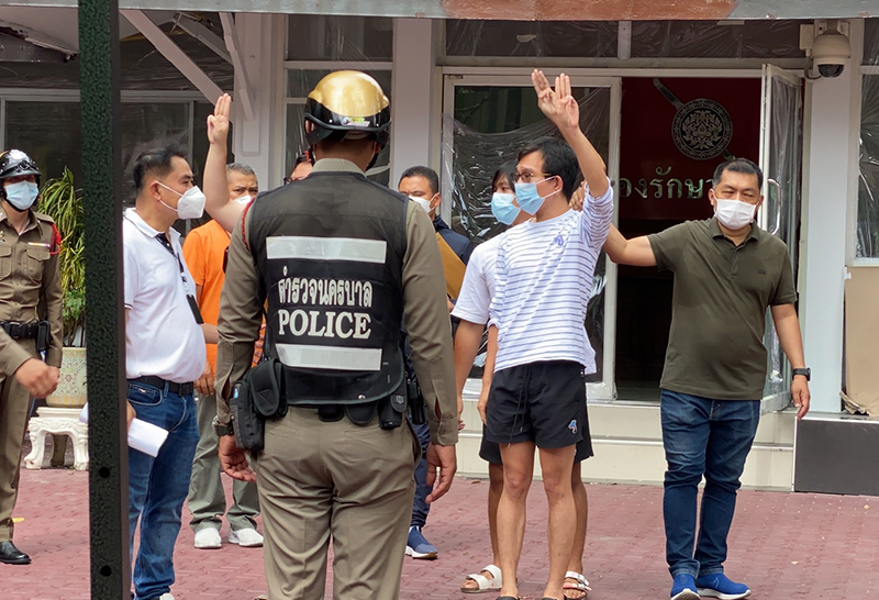 “เพนกวิน” ชู3นิ้วก่อนถูกหิ้วขึ้นรถตู้พร้อมพวก 3 คน ไปยัง สภ.คลองห้า