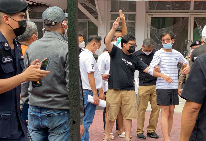 ซึ่งก่อนขึ้นรถกตู้ เพนกวินได้ชู 3 นิ้ว พร้อมพูดว่า ตนเองมาเรียกร้องประชาธิปไตย ทำไมต้องปฏิบัติกับพวกเราเหมือนหมูเหมือนหมา ตนเองไม่ได้ทำอะไรผิด ควรให้เกียรติกันมากกว่านี้