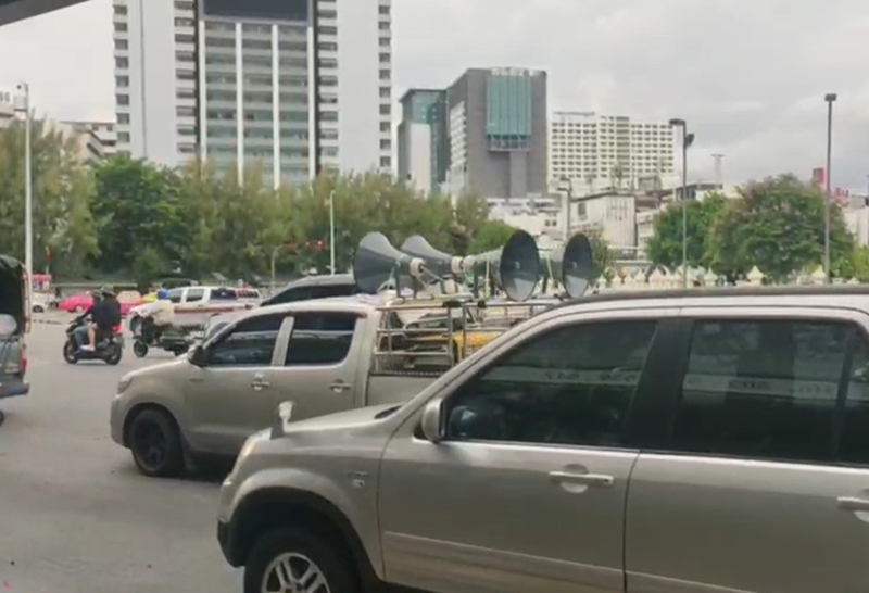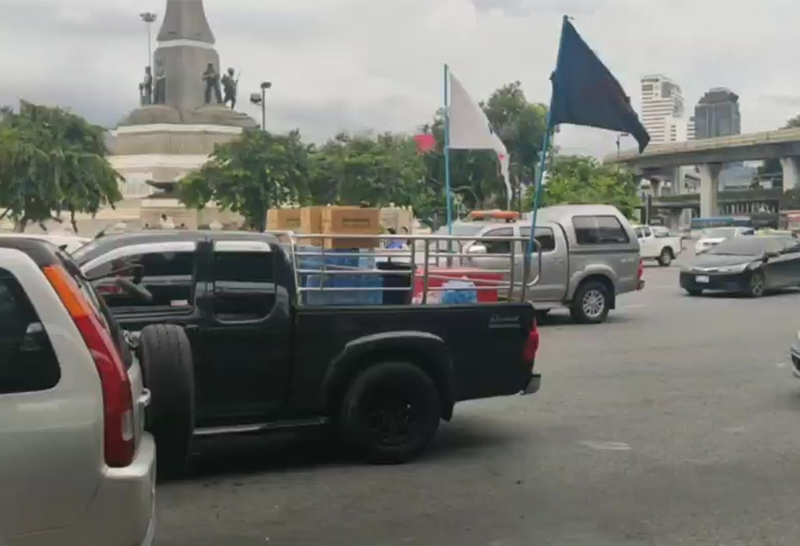 บรรยากาศที่อนุสาวรีย์ชัยสมรภูมิ บริเวณเกาะพญาไท ก่อนที่จะมีการเริ่มกิจกรรมชุมนุมไล่ล่าทรราช ที่จัดโดยกลุ่มทะลุฟ้า ในเวลา 15.00 น. มีมวลชนเริ่มทยอยเข้าพื้นที่เพื่อร่วมจัดกิจกรรม พร้อมรถเครื่องขยายเสียงและรถบรรทุกน้ำดื่ม
