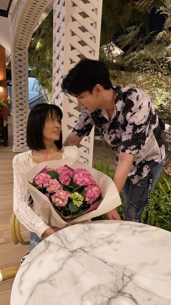 คิมม่อน – วโรดม เข็มมณฑา และ คุณแม่ปิยวดี เข็มมณฑา “อยากให้คุณแม่สุขภาพแข็งแรง คิดถึงแม่ อยากโทรหา อยากให้คุณแม่อยู่กับลูกไปนานๆ พักผ่อนเยอะๆ และสุดท้ายอยากจะบอกว่า … รักแม่นะครับ”