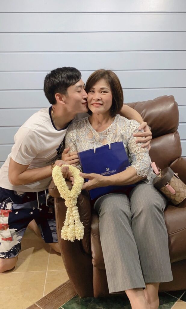 เริ่มต้นด้วยคนแรก ย้อนไปสมัยเด็ก ที่เขาต้องไปเรียนพิเศษ หลังเลิกเรียน ขอแอบคุณแม่หนีออกไปเล่นเกม พักผ่อนนิดหน่อย แต่ก็ไม่พ้นสายตาอันแหลมคมของคุณแม่ อย่างหนุ่ม “ไนกี้-นิธิดล” กล่าวว่า “เป็นเรื่องตลกของผม ที่ผมไม่ลืมเลยครับ ตอนเด็กๆ ผมเคยไปเรียนพิเศษ และแอบหนีคุณแม่ไปเล่นเกม ตอนนี้จำได้ว่ากำลังเล่นสนุกเลยครับ นั่งเล่นอยู่ ก็เหมือนมีคนมายืนอยู่ข้างหลัง พอหันไปก็ต้องตกใจแบบสุดขีด เพราะคุณแม่ยืนจ้องผมอยู่ เรียกได้ว่าตอนนั้นเราเกมของจริงเลย กลับไปไปโดนคุณแม่จัดชุดใหญ่เลยครับ (หัวเราะ) สำหรับวันแม่ปีนี้ ผมอยากจะบอกว่า ผมรักแม่นะครับ ขอให้คุณแม่ผม และคุณแม่ทุกคนมีสุขภาพแข็งแรง ดูแลตัวเอง การ์ดอย่าตก เราจะผ่านโควิด-19ไปพร้อมกันนะครับ”