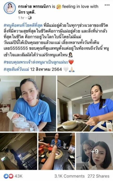 โพสต์ซึ้งบอกรักคุณแม่เนื่องในวันแม่แห่งชาติที่ผ่านมา แต่ไม่วายเจอแกระแสดราม่ารัวๆ สำหรับนักร้องสาวกระต่าย พรรณนิภา หลังจากที่ก่อนหน้านี้ทัวร์ลงหนักเปิดตัวมีลูกกับครูไพบูลย์  ซึ่งในโพสต์ดังกล่าวสาวกระต่ายได้โพสต์รูปคู่กับคุณแม่พร้อมแคปชั่นระบุว่า #หนูคือคนที่โชคดีที่สุด ที่มีแม่อยู่ด้วยในทุกๆ ช่วงเวลาของชีวิต สิ่งที่มีความสุขที่สุดในชีวิตคือการมีแม่อยู่ด้วย และสิ่งที่น่ากลัวที่สุดในชีวิต คือการอยู่ในโลกใบนี้โดยไม่มีแม่ วันแม่ปีนี้ได้เป็นคุณยายแล้วนะเเม่ เลี้ยงหลานทั้งวันทั้งคืนเลย5555555 ขอบคุณที่ดูเเลหนูตั้งเเต่อยู่ในท้องจนถึงวันนี้ หนูเข้าใจเเละสัมผัสได้ว่าเเม่รักหนูเเค่ไหน🤱🏻#ขอบคุณพระเจ้าส่งหนูมาเป็นลูกแม่นะ❤️ #สุขสันต์วันเเม่ 12 สิงหาคม 2564 🤍🙏🏻”