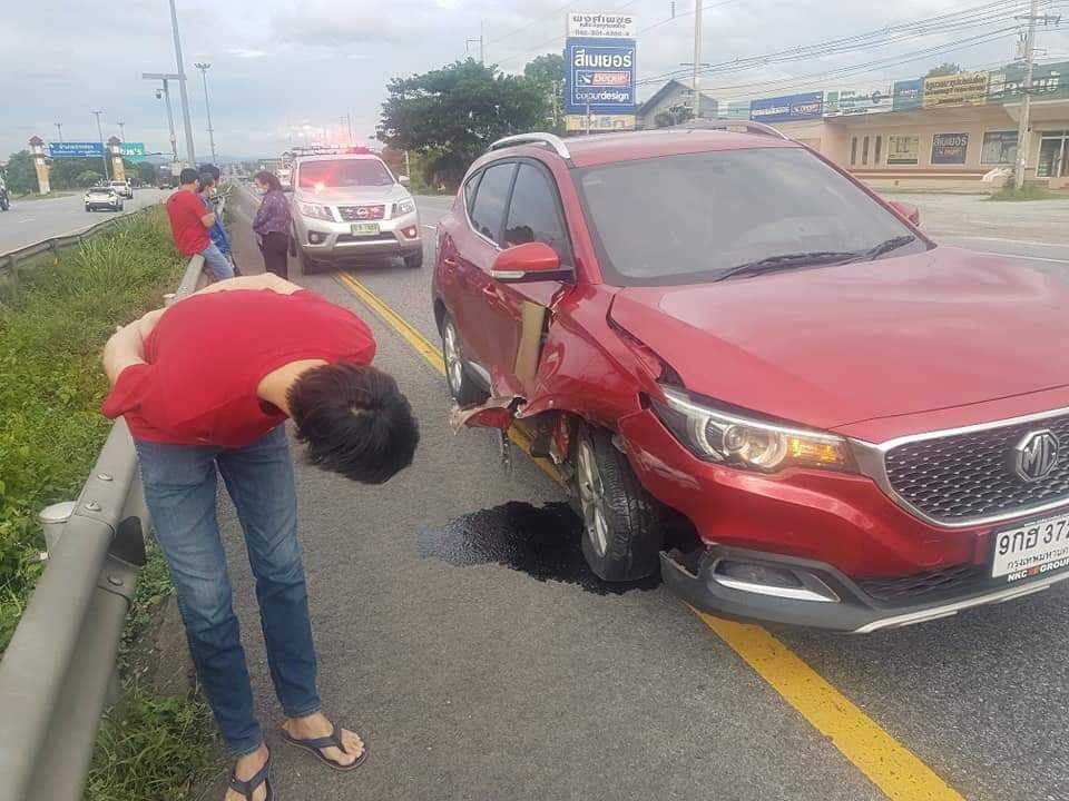 พอวันเกิดเหตุ ซึ่งตอนนั้นผมนั่งเบาะหลัง โดยมี เจ้ณุตะลุยทำ เป็นคนขับ และมี น้องแมน ศุภกร นั่งข้างคนขับ เจ้ณุตะลุยทำเกิดอาการหลับในทำให้รถเสียหลักพุ่งใส่รางที่กั้นเกาะกลาง เป็นเหตุให้รถไถลเป็นทางแฉลบ พักยับ และเจ้ณุก็สดุ้งตื่น พร้อมเหยียบเบรกเต็มเท้า  ด้วยความเร็วทำให้รถไถลตามถนน ไป เกือบ 200 เมตร ตามภาพ และแอร์แบล็คทำงานระเบิด ทั้ง ข้าง ผมหัวไปชนเบาะคนนั่งข้าง แต่ทุกคนที่อยู่ในรถปลอดภัยกันทุกคน