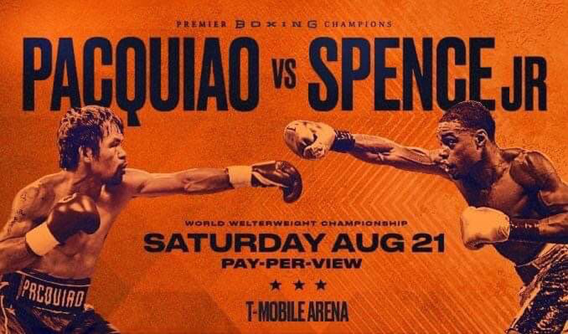 ปาเกียว ยอดมวยโลกชาวฟิลิปปินส์ วัย 42 ปี เดิมที มีกำหนดชกกับ เออร์รอล สเปนซ์ จูเนียร์ แชมป์โลก 2 สถาบันชาวอเมริกัน แต่โชคร้ายเมื่อสัปดาห์ที่ผ่านมา วาสนาของ แชมป์โลกอเมริกันไม่เพียงพอจะได้สัมผัสเงินพันล้าน(บาท) เนื่องจากตนเองได้รับบาดเจ็บ นัยน์ตาชำรุดระหว่างซ้อมหนักโค้งสุดท้าย จนแพทย์ไม่อนุญาตให้ชก