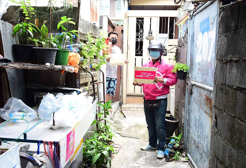 นพ.จเด็จ ธรรมธัชอารี เลขาธิการสำนักงานหลักประกันสุขภาพแห่งชาติ (สปสช.) กล่าวว่า ในการดูแลผู้ติดเชื้อโควิด-19 กลุ่มสีเขียวที่บ้าน (Home Isolation :HI) ยังมีผู้ติดเชื้อส่วนหนึ่งที่อยู่ระหว่างรอการลงทะเบียนกับหน่วยบริการ ทำให้ยังไม่ได้รับการดูแล หากมีอาการขยับสู่กลุ่มอาการสีเหลืองและสีแดง และโทรมาที่สายด่วน สปสช. 1330 เมื่อเจ้าหน้าที่ประเมินอาการตามเกณฑ์และจะจัดยาฟาวิพิราเวียร์ให้กับผู้ติดเชื้อโดยเร็ว ซึ่งที่ผ่านมาใช้วิธีส่งยาให้ผู้ติดเชื้อหลายรูปแบบ ในวันนี้สปสช. ได้รับความร่วมมือจากธนาคารออมสินจัดส่งไรเดอร์ (Rider) มาร่วมบริการส่งยาให้กับผู้ติดเชื้อโควิด-19 เริ่มตั้งแต่วันที่ 11 สิงหาคมที่ผ่านมา ทำให้ผู้ติดเชื้อได้รับยารักษาโดยสะดวกและรวดเร็วขึ้น ช่วยยับยั้งภาวะรุนแรงของโรคและการเสียชีวิตได้