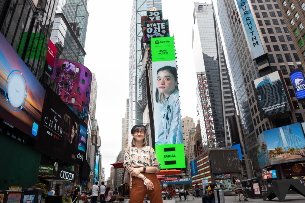 ขอปรบมืออย่างกึกก้องให้กับ “ส้ม มารี”ศิลปินจาก สไปร์ซซี่ ดิสก์ (SPICY DISC)เพราะล่าสุดส้มได้รับเลือกจากSpotifyเป็นตัวแทนศิลปินหญิงจากประเทศไทยอีกคนหนึ่งใน แคมเปญ“Equal”ซึ่งจะได้รับคัดเลือกให้เข้าไปอยู่ในเพลย์ลิสต์นี้รวมถึงยังได้รับการโปรโมทให้ไปขึ้น Billboard กลาง Time Squareแน่นอนข่าวนี้นำพาความตื่นเต้นมาให้ส้ม เป็นอย่างมากเพราะไม่เคยคิดว่าตัวเองจะได้มีรูปขึ้นบิลบอร์ดกลางมหานครนิวยอร์ค ประจวบเหมาะพอดีกับที่เจ้าตัวได้มีแพลนจะบินไปที่ประเทศสหรัฐอเมริกาอยู่แล้วดังนั้นเจ้าตัวจึงไม่พลาดแชะ! ภาพเป็นที่ระลึกกลับมาด้วย