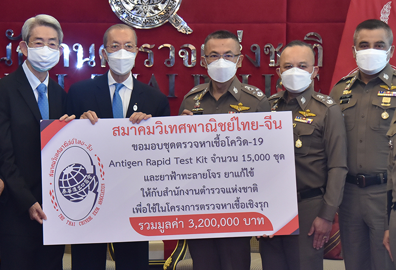 พล.ต.อ.สุวัฒน์ แจ้งยอดสุข ผู้บัญชาการตำรวจแห่งชาติ รับมอบชุดตรวจหาเชื้อไวรัสโคโรนา 2019 (โควิด-19) แบบ Antigen Test Kit หรือ ATK จาก นายไชยไว พูนลาภมงคล นายกสมาคมวิเทศพาณิชย์ไทย-จีนและคณะ จำนวน 15,000 ชุด พร้อมยาฟ้าทะลายโจร และยาลดไข้ และรับมอบจาก นางวิภาดา ดวงรัตน์ รองประธานกรรมการบริหารมูลนิธิ บีเจซี บิ๊กซี และคณะอีก จำนวน 12,000 ชุด รวมทั้งหมด 27,000 ชุด เพื่อให้สำนักงานตำรวจแห่งชาติใช้ในการตรวจหาเชื้อโควิด-19 แก่ข้าราชการตำรวจและครอบครัวรวมประชาชน