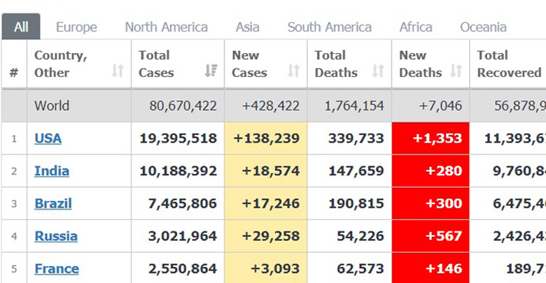 ทั่วโลกป่วยโควิดกว่า80.6ล้านคน-เพิ่มกว่า4.2แสน