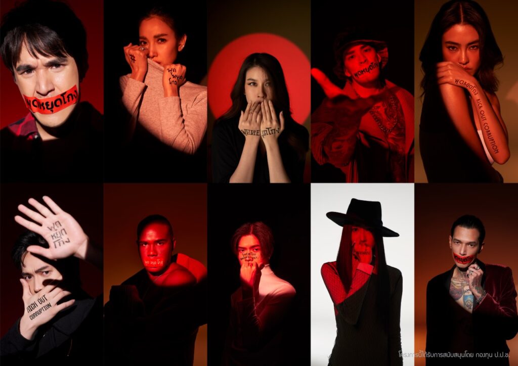 ซึ่งงานนี้ได้เหล่าดารา/นักแสดง, ศิลปิน, ดีเจ และอินฟลูเอนเซอร์ชื่อดังของเมืองไทย มากกว่า 30 ชีวิตทั้งรุ่นใหญ่และรุ่นใหม่ นำโดย บุ๋ม– ปนัดดา, แทค ภรัณยู, อ๊อฟ-ปองศักดิ์, ตูมตาม–ยุทธนา, ดีเจ มะตูม, ดีเจ ต้นหอม, ดีเจ นุ้ย, รัศมีแข, เมย์–พิชญ์นาฏ, แพท–ณปภา, จั๊กจั่น-อคัมย์สิริ ,เชียร์–ฑิฆัมพร, กรีน–อัษฎาพร, โยเกิร์ต–ณัฐฐชาช์, ไม้– วฤษฎิ์, นิว–ชัยพล, ลี-ฐานัฐพ์, ลุค อิชิคาว่า, ก้าวหน้า – กิตติภัทร, เทอร์โบ – ชนกชนม์ และอีกมากมายหลายชีวิต ที่ต้องการให้เกิดการเปลี่ยนแปลงเกี่ยวกับปัญหาคอร์รัปชัน โดยร่วมกัน “โพสต์ภาพมือที่ปิดปาก” พร้อมข้อความบนหลังมือ #พูดหยุดโกง เพื่อให้คนรับรู้ถึงการไม่ยอมปิดปาก ยอมพูดเรื่องการคอร์รัปชัน พูดหยุดโกง…ที่เกิดขึ้นในสังคม