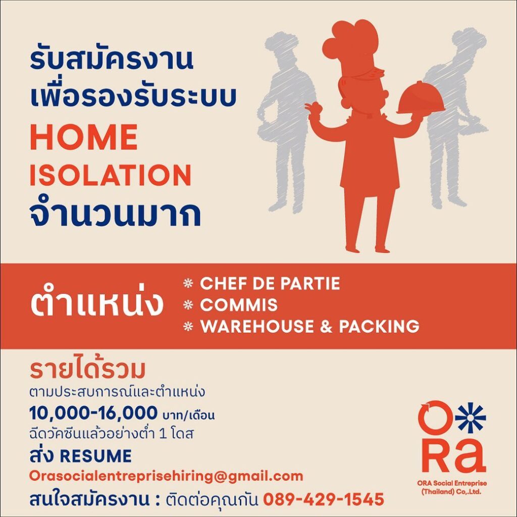 ทางORa วิสาหกิจเพื่อสังคม ได้ร่วมมือกับ ทีมอาสาสมัคร ทีมผู้ดูแล ชุมชนเอื้ออาทรลาดกระบัง2 และ ชุมชุมเลียบคลองมอญ ในการนำอาหารของเราและของใช้จำเป็นไปส่งมอบให้กับผู้ที่ต้องกักตัวในHome Isolation ยังมีอีกหลายชุมชนที่ความช่วยเหลือยังเข้าไปไม่ถึง