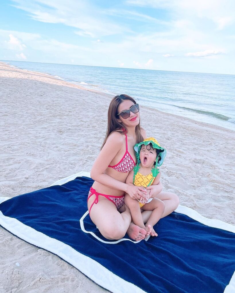 แต่ว่าก่อนคลอดที่ว่าเด็ดแล้ว หลังคลอดยิ่งว่าเด็ดใหญ่จ้า เพราะเจ้าตัวจัดเต็มไม่มีกั๊กเรื่องความเซ็กซี่ ซึ่งตอนนี้หุ่นคุณแม่เข้าที่เข้าทาง และกลับมาสวยแซ่บเซี๊ยะเหมือนเดิมแล้ว อย่างล่าสุดเจ้าตัวจัดทริปไปเที่ยวทะเลพร้อมโพสต์ภาพสวมชุดบิกินี่สีแดงเพลิงอวดหุ่นเซี๊ยะ ถ่ายคู่กันลูกสาวสุดน่ารักอย่างน้องเวทมนต์ ที่เรียกว่าดีกรีความสวยนั้นไม่มีใครยอมใคร งานนี้บอกเลยว่า คุณแม่คนสวยโพสท่าจัดเต็ม อวดทรวดทรงองเอว สัดส่วนสุดเป๊ะ จะซูมตาแตกขนาดไหนก็ไม่โป๊ะ ถือเป็นการกลับมาทวงบัลลังก์ความแซ่บได้อย่างสมศักดิ์ศรีจริง ๆจ้า